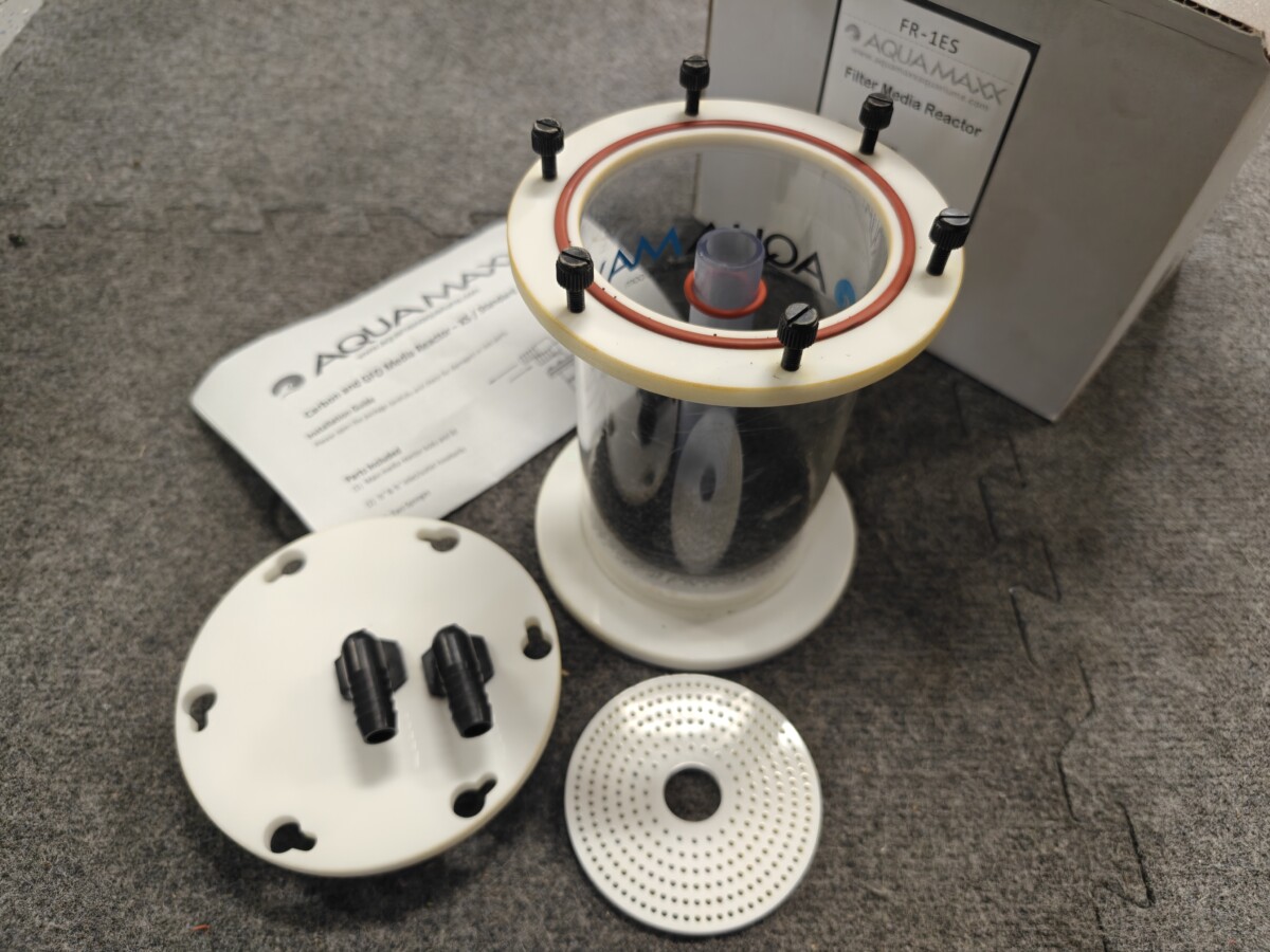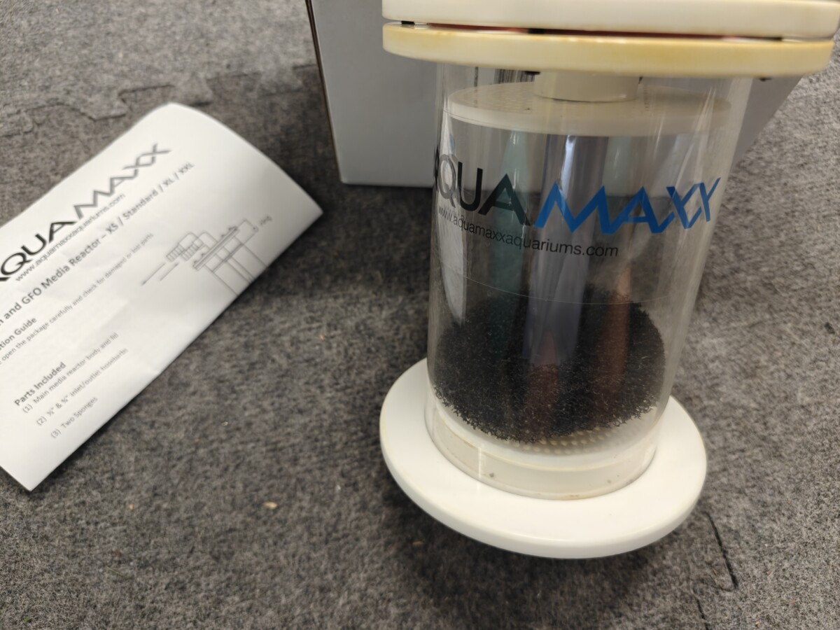 For sale is this used AquaMaxx Media reactor. Includes all parts with one sponge filter. This reactor has some stain from GFO. Free pickup in Tualatin, OR or can be shipped.