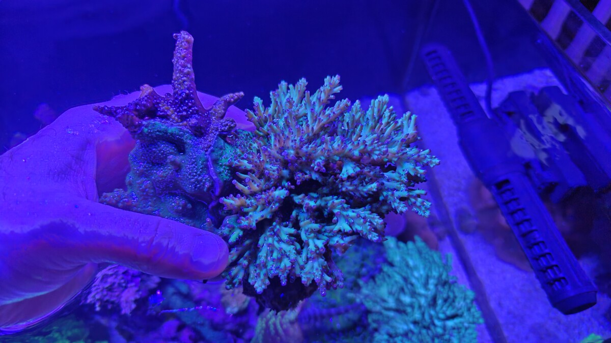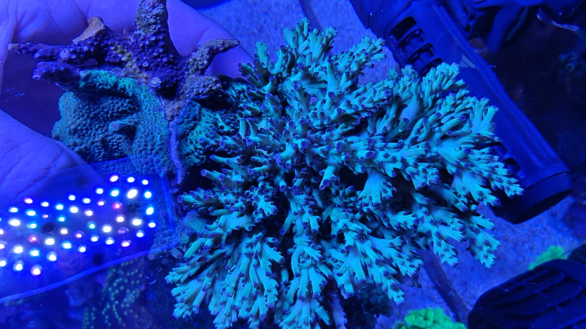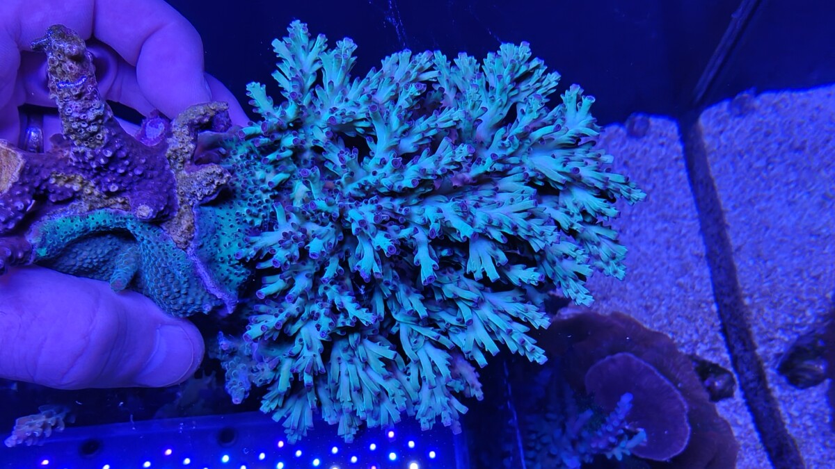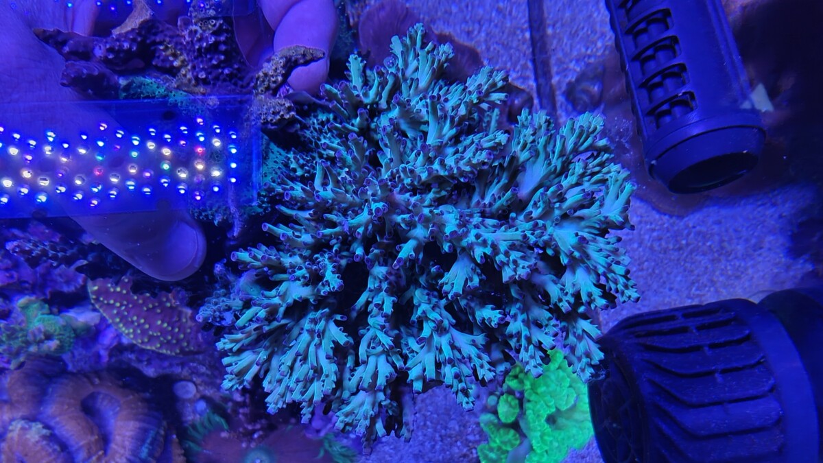 For sale is this Strawberry Shortcake colony and attached small rock. This is is a good sized colony. I’ve had it a bit lower and in the back, so it’s more on the green size with red/purple tips. Local pickup in Tualatin, OR. No Shipping. We will contact you regarding pickup after payment received.
